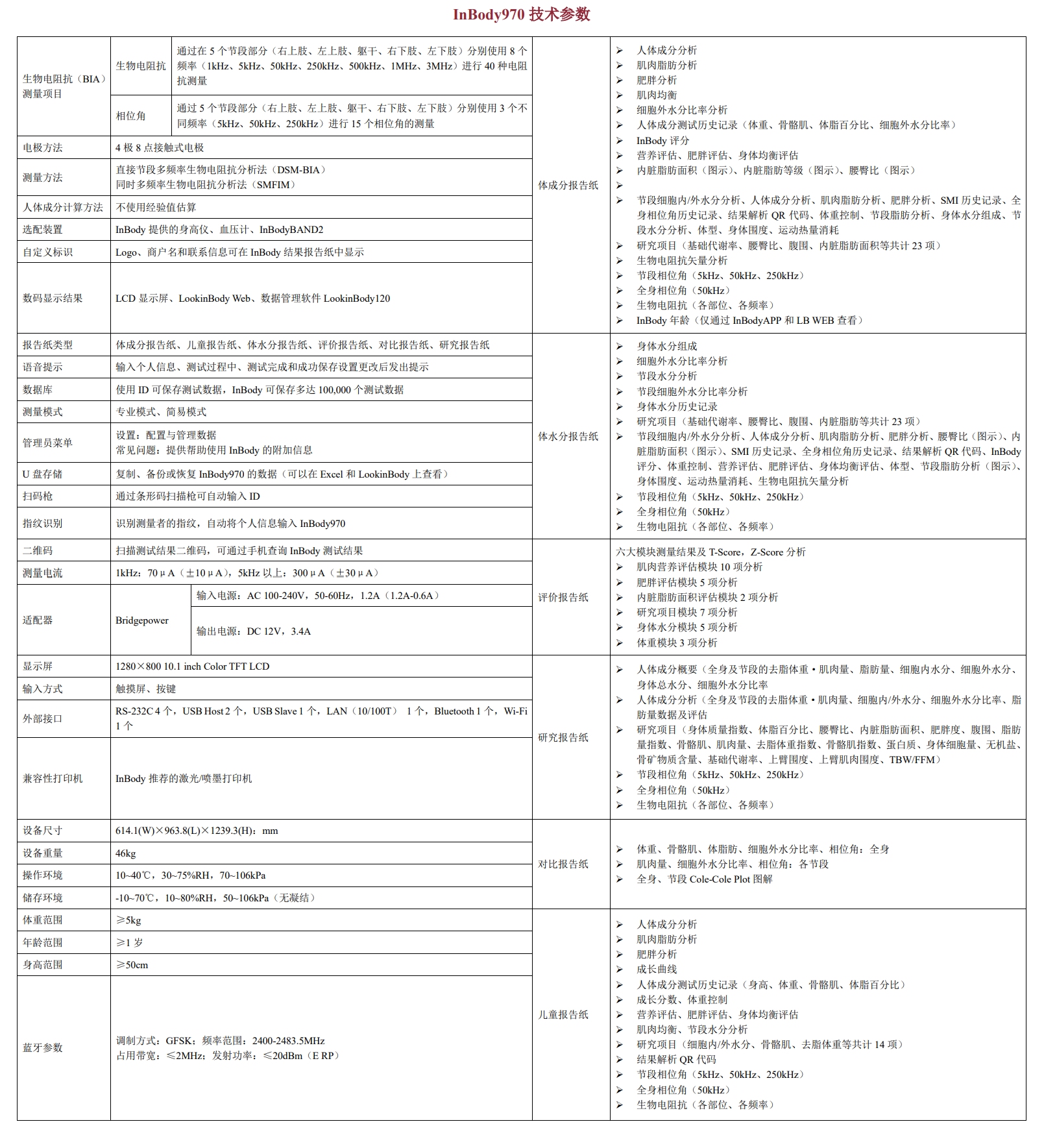 同时使用8个频率,快速检测,提供6种报告纸,上百个结果项目算值,准确测量各种特殊体型