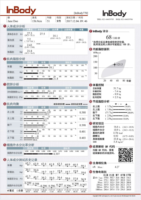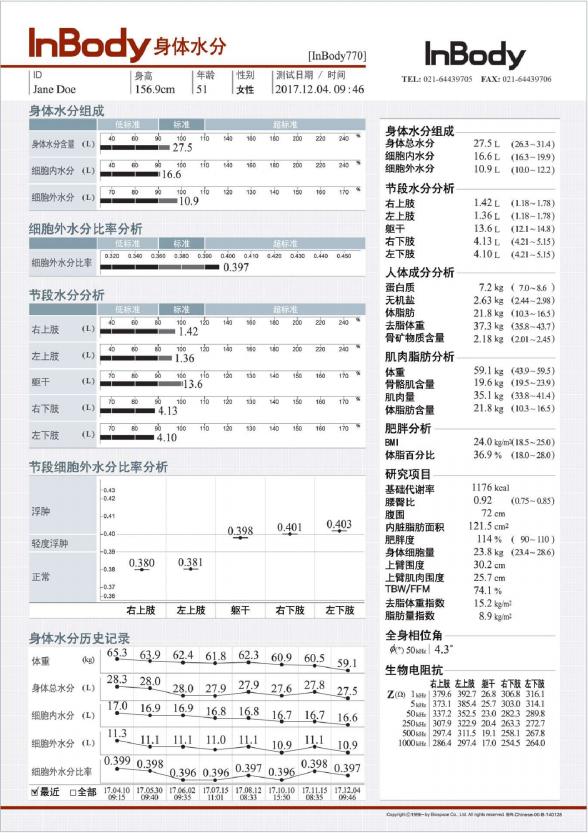 在需要准确监测体水分的情况下,InBody770体水分结果报告纸将为您提供详细的节段水分分析和节段细胞外水分比率分析