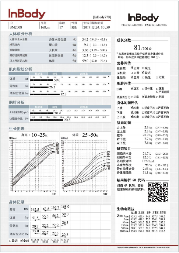 儿童InBody结果报告纸,一眼看清儿童的生长发育状态